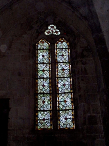 Verrière exécutée vers 1280, complétée en 1891 par le maître verrier Anglade d'après 3 panneaux d'origine, 2 dans la lancette droite et un en haut de la lancette gauche..