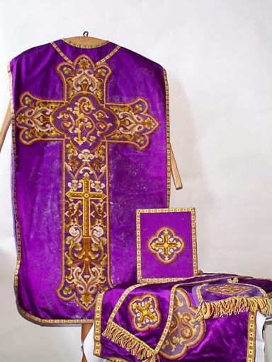 POP | Plateforme ouverte du patrimoineOrnement violet 1 : chasuble, étole, manipule, bourse de corporal, voile de calice (Campel fusionnée en Val d'Anast en 2017)