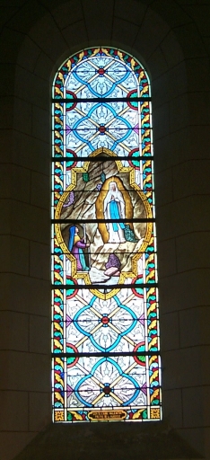 Ensemble des verrières à personnages des baies 3 et 4 : Apparition de Notre-Dame de Lourdes, Apparition de Notre-Dame de Pontmain