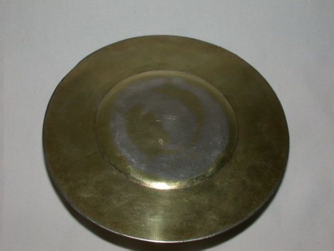 La patène est cabossée et la dorure usée.