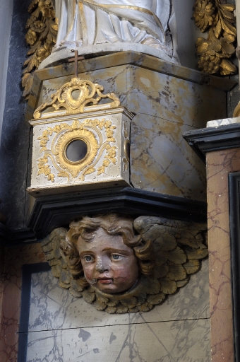 Le bois est vermoulu ; il manque la partie supérieure du décor du reliquaire situé sous saint Paul.