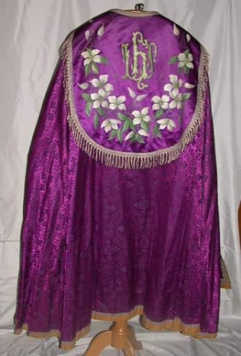 soie (violette) : tissu façonné, satin, application sur textile, peint, polychrome