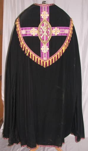 Sur le chaperon : Chrisme, Alpha et Oméga, croix.