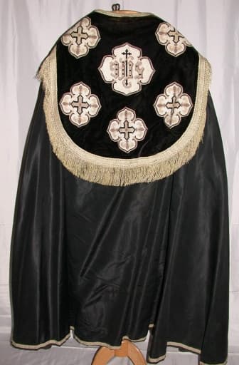 Sur le chaperon : I.H.S. dans un quadrilobe, croix dans des quadrilobes.