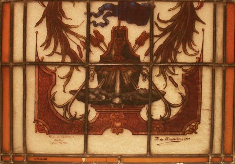 Musée de l'Hospice Saint-Roch : De l'hôtel-dieu fondé au 12e siècle par les chanoines de Saint-Cyr, communément appelé l'Hospice Saint-Roch, subsistent plusieurs bâtiments anciens, partiellement reconstruits au 18e siècle, disposés en U autour de la chapelle, restaurée et décorée au début du 16e siècle. Après la Révolution, l'établissement fonctionna comme hôpital municipal jusqu'à la fin du 19e siècle, avant d'accueillir, en 1940, les collections du musée de la ville d'Issoudun.£Les vitraux : Ensemble réalisé d'après l'ornemaniste Claude Audran (1658-1734), par Henri de Chenevière, peintre actif à Paris dans la seconde moitié du 19e siècle et au début du 20e. Ces panneaux proviennent de la demeure de l'artiste.