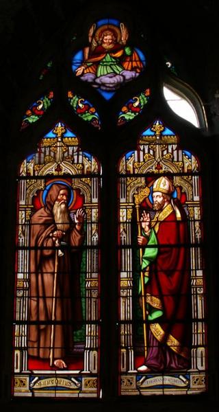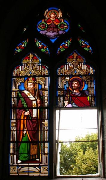 Ces quatre verrières, formant un ensemble homogène, présentent des personnages en pied sous un décor d'architecture. Sont ainsi figurés : la Vierge à l'Enfant et saint Joseph (baie 1), un saint évêque et sainte Solange (baie 2), saint Antoine l'ermite et saint Ursin (baie 3), saint Alexandre de Jérusalem et un soldat romain (baie 4).