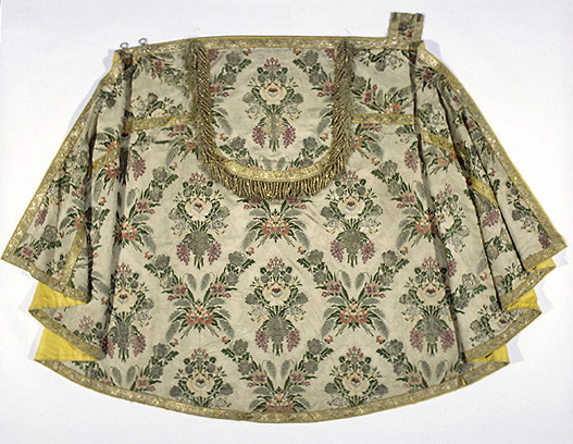 soie : damas, lancé, blanc, vert, rose ; fil métal
