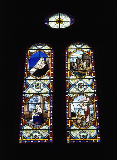 ensemble de 2 verrières (verrière figurée décorative, vitrail tableau) (No baies 9, 12)