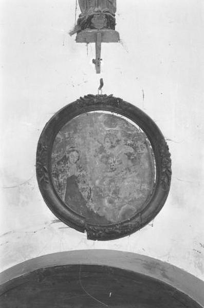 La scène est illisible, les couleurs ont presque totalement disparues, la toile et le cadre sont disjoints ; cadre brisé