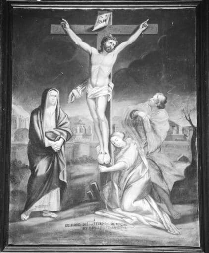 tableau : le Christ en croix, avec la Vierge, saint Jean et Marie-Madeleine