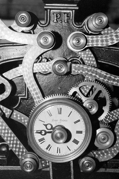 La plaque émaillée fixée à l'avant de l'horloge porte : CETTE HORLOGE A ETE PLACEE LE 24 8bre 1896, / SOUS L'ADMINISTRATION DE : / [suivent les noms du maire - Aimé-Napoléon Girod -, de son adjoint et de ses 10 conseillers]. La date de fabrication et les références de la fabrique apparaissent sur le cadran de réglage : PROST FRERES / MOREZ - JURA 1896. Sur le bâti, outre ses initiales, sont portés en relief, dans un décor de gerbes de blé et de grappes de raisin, les inscriptions : PROST FRERES / FABRIQUE D'HORLOGERIE / A MOREZ (JURA). Le nom de Paget est inscrit sur le cadran extérieur. Inscription technique du moteur : Moteurs 'Lumière'vitesse fixe à coupleur / J. M. Lyon. Plaque signalétique : JULIEN & MEGE / 22, Boul. des Hirondelles, 22 / LYON / [...] / Moteurs monophasés / à répulsion et coupleur / Type L 22 / N° de série 143 731.