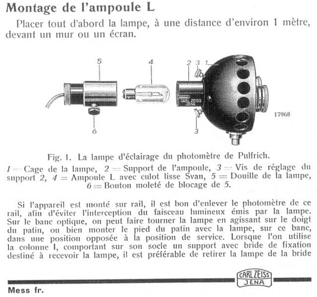 lampe électrique Zeiss pour photomètre de Pulfrich