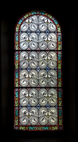 Verrières exécutées en 1898 par le Toulousain Henri Louis Victor Gesta (1864-1938) ; elles sont sorties de la première manufacture fondée par le verrier, qui fit faillite en 1901.