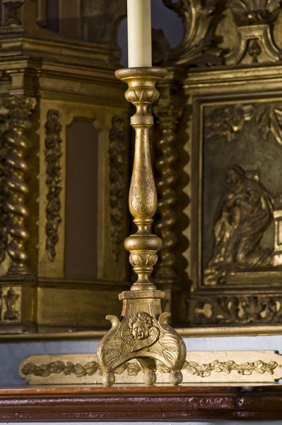 Cette garniture d'autel (peut-être pas homogène) est sans doute contemporaine de la réfection de l'ensemble du maître-autel en 1825.