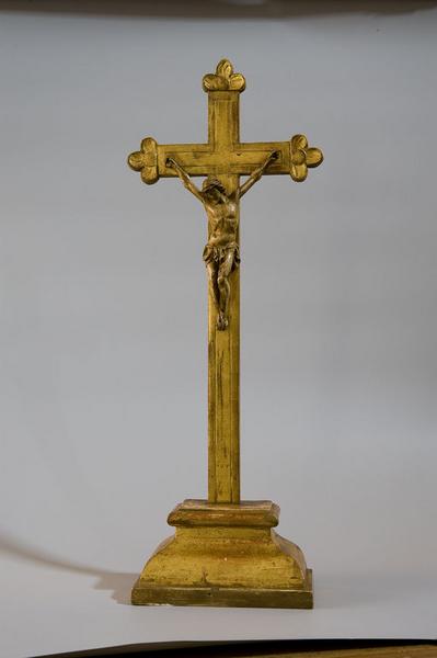 ornementation (angelot)£Christ en croix ; ornementation (trèfle)