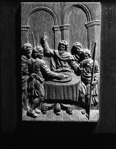 POP | Plateforme ouverte du patrimoineensemble de 2 panneaux sculptés du tabernacle du maître-autel : Pèlerins d'Emmaüs, La Pâque