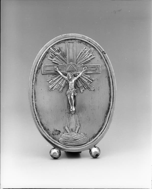 ornementation (Christ en Croix, rayons lumineux, symbole christique, à filet)