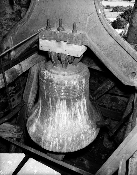 Inscription : L' AN 1774 J' AY ETE BENITE PAR Mr JACQUES SOULIER CURE DE YEVRE LE CHATEL & NOMMEE ALEXANDRE THERESE OPPORTUNE PAR MESSIRE CHARLES ALEXANDRE DE VIDAL CHVALLIER DE CHAUMONT & PUISSANT SEIGNEUR D' ANZANVILLE DES GRANDS CHATELLIER DE VILLARSEAU & AUTES LIEUX & PAR GENEVIEVE LECLER (?) DE FLEURIGNY DE VIDAL TRES HAUTE & PUISSANTE DAME DE DIONS D' AUNEUX & DE LA FERE DE LA REINERE & AUTES LIEUX FRANCOIS MOIGNU V JEAN THOUARD MARGUILLIERS DOMINIQUE & FRANCOIS & VINCENT LES THERIOT PIERRE PERRICHON SONNEUR.