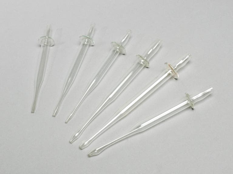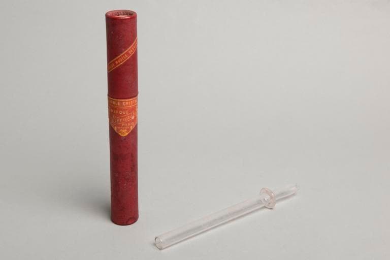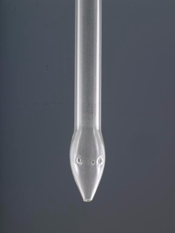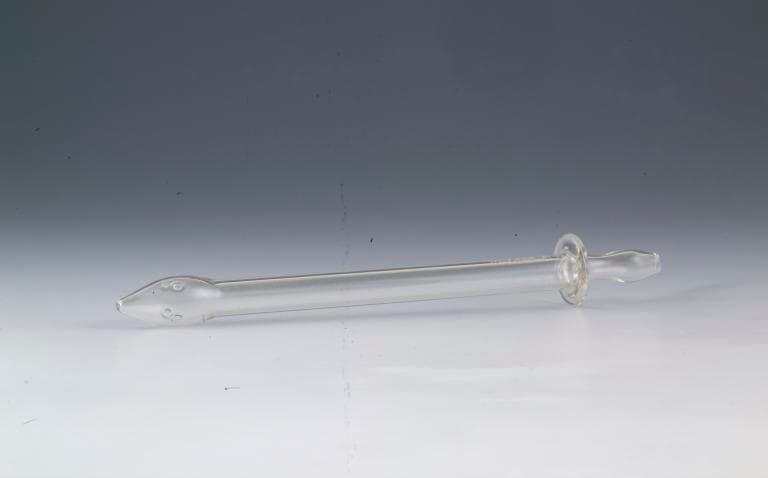 La canule consiste en un instrument dont la tête renflée est percée d'orifices permettant l'écoulement du médicament. A l'autre extrémité, une butée en colerette assure le maintien de la sonde. Ces canules en cristal sont de formes et de tailles diverses ; l'une d'elles a conservé son tube de protection d'origine.