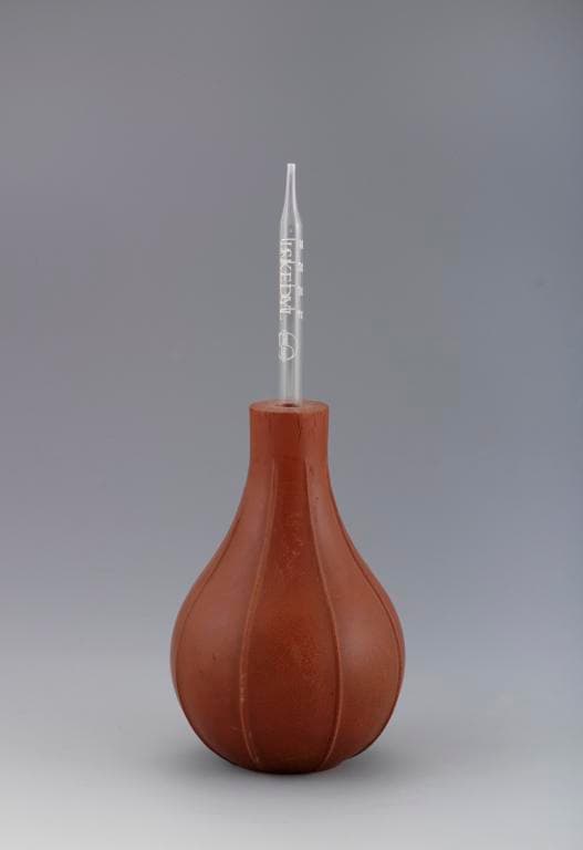 Poire en caoutchouc pourvue d'une canule en verre à l'origine.