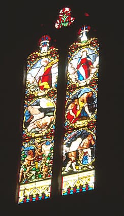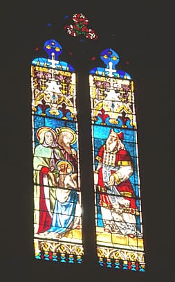 choeur (baies 0 à 4 et 100 à 106) ; chapelles (baies 5 à 8) ; murs gouttereaux de la nef (baies 107 à 109) ; mur ouest (baie 111, rose)