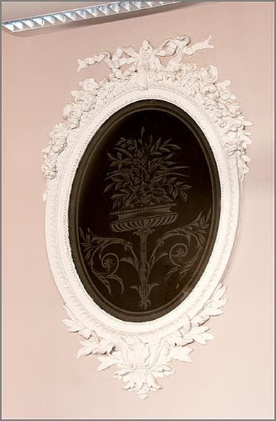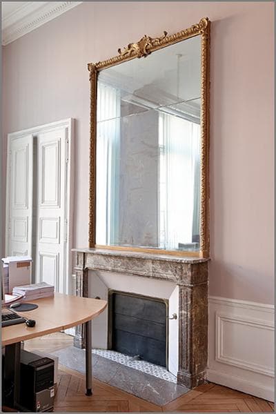lambris d'appui ; plafond ; cheminée ; alcôve ; glace