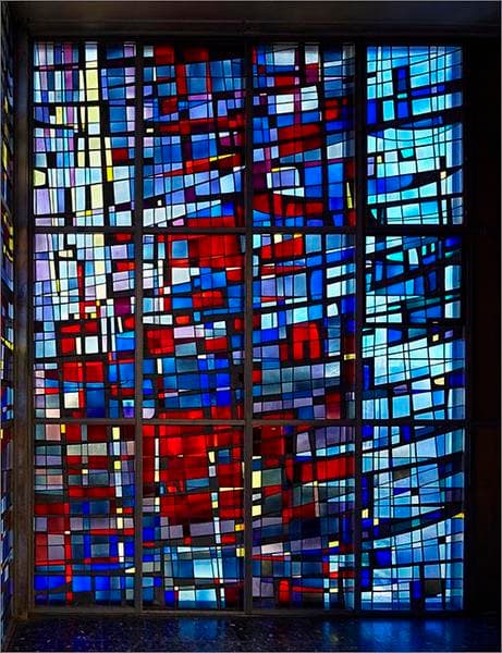 verre transparent (coloré) ; plomb (réseau) ; métal