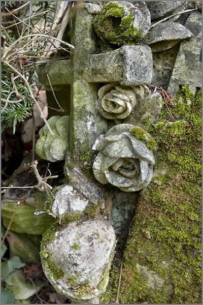 ange ; Christ en croix ; ancre ; urne ; voile ; tronc écoté ; immortelle ; pavot ; rose ; palme ; lys