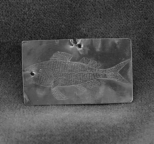Forme rectangulaire horizontale ; cloué sur le fond d'une boîte recouvert de tissu.£Feuille d'argent non poinçonnée