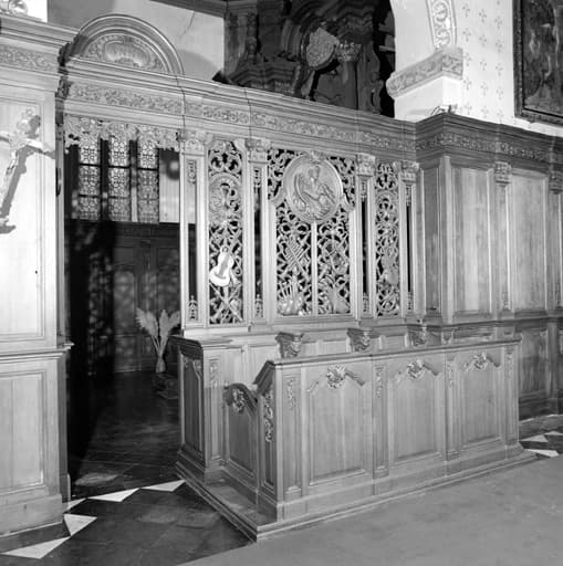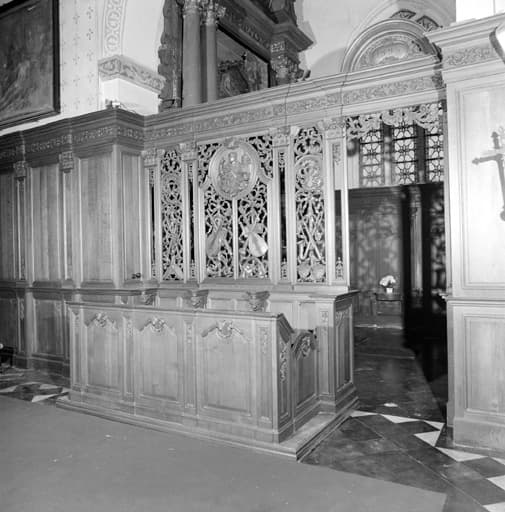 clôture de sanctuaire (2) ; stalles ; lambris de demi-revêtement (2)