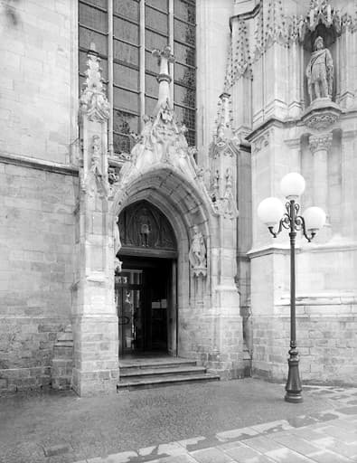 POP | Plateforme ouverte du patrimoine2 portails avec statues : 4 martyrs de la Légion thébaine ; 2 hauts-reliefs : 2 colombes du Saint-Esprit