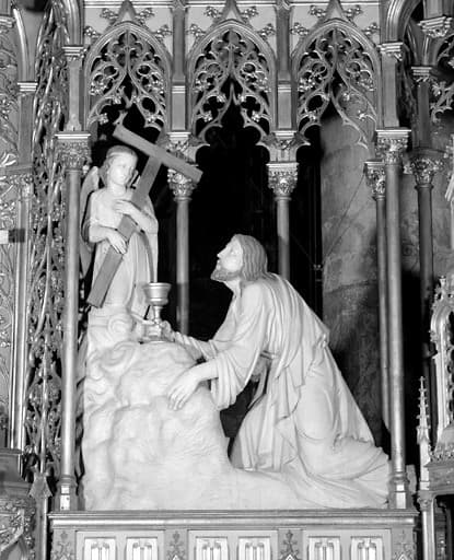 2 groupes sculptés : la Cène, le Jardin des Oliviers (ensemble du maître-autel de style néo-gothique)