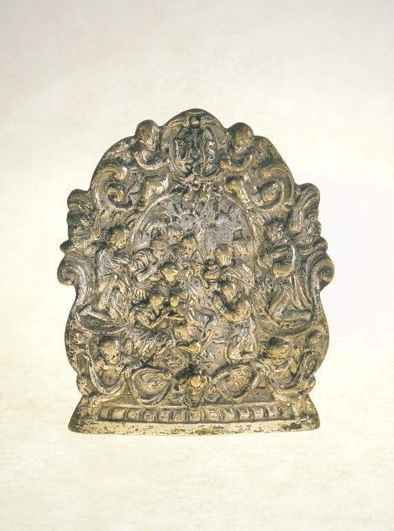 cuivre : fondu, argenté à la feuille, ciselé, décor dans la masse, décor en bas-relief