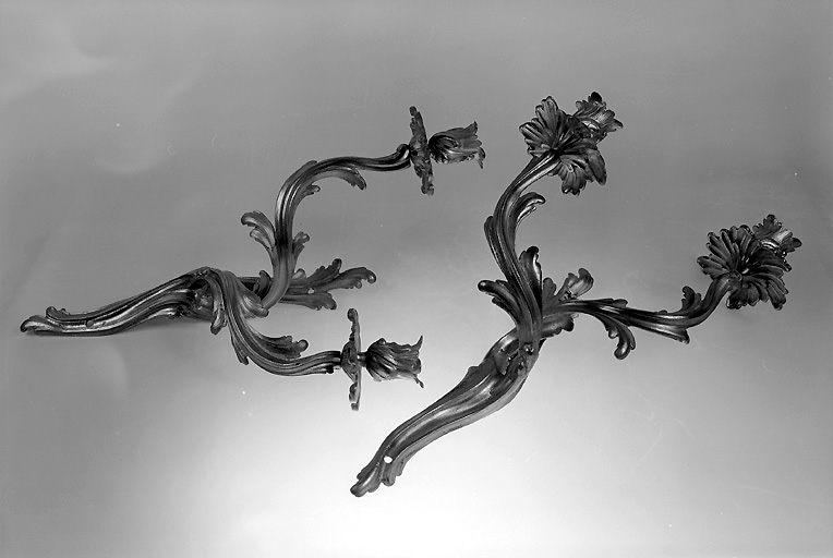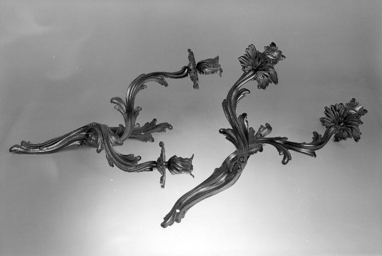 La forme des bras est caractéristique de la production du règne de Louis XV. Ces appliques figurent sous les numéros 317, 318, 319 et 320 de l'inventaire de 1931 de l'abbé Tesson.
