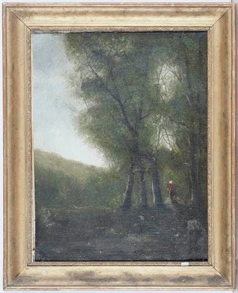 tableau : femme sous une allée d'arbres