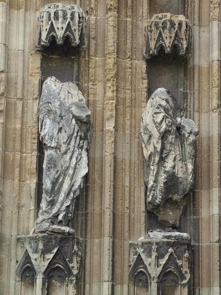 Ensemble des 5 statues du portail occidental : Vierge à l'Enfant et saints personnages