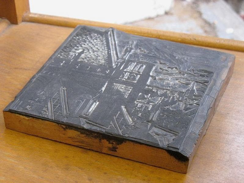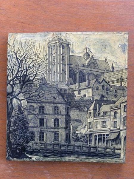 Ensemble de 19 éléments d'impression (bois gravés) et 1 livre (La Cathédrale)