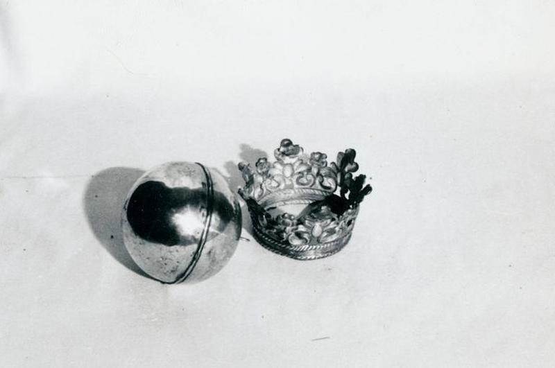 La photographie ancienne présente l'objet accompagné d'une couronne (non trouvée).