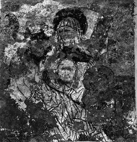 Sainte Véronique présentant la Sainte Face, avec Christ, peinte par dessus l'Ecce Homo (?) ; personnages dont ne subsistent que les robes et les pieds peints par dessus une Mise au tombeau (?)