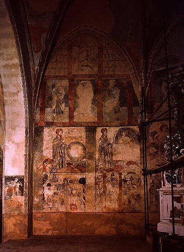 POP | Plateforme ouverte du patrimoinepeinture murale : Immaculée Conception, scènes de la Vie de la Vierge, Création du monde, saints, calvaire, saint Martin, deux personnages