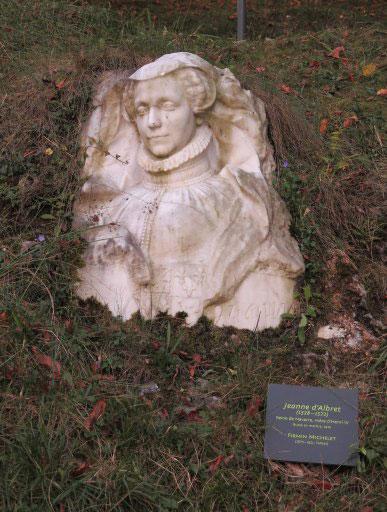 Jeanne d'Albret, reine de Navarre (1528-1572) et mère du futur roi Henri IV vint en séjour à Bagnère à trois reprises (1563, en 1565 et 1571). On lui doit l'aménagement des Bains de Bagnerolles, appelés aussi Bains de la Reine. Oeuvre de Firmin Michelet (1875-1951), ce bas-relief fut réalisé en 1922. Originaire de Tarbes, F. Michelet est l'auteur d'une production importante de sculptures sur la région pyrénéenne (bas-relief du musée Salies, ND des Neiges à Gavarnie, statue équestre du Maréchal Foch à Tarbes, buste de Jules Lafforgue au Jardin Massey, plusieurs monuments aux morts...) ainsi qu'une des métopes du palais de Chaillot à Paris.