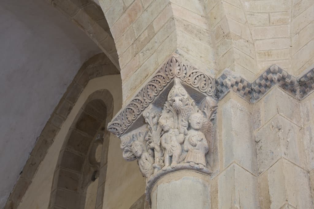 Ce chapiteau engagé occupe la face du pilier sud-est de la quatrième travée de la nef