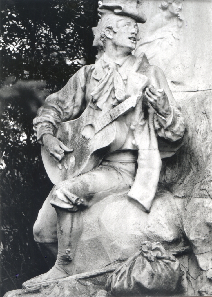 doigts du musicien brisés, nez ébréché ; manche de la guitare cassé
