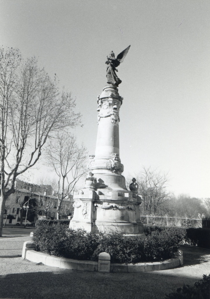 traités avec le sculpteur et l'entrepreneur le 2 décembre 1894 ; autorisation ministérielle en mars et avril 1894 ; monument érigé sur l'initiative d'un comité présidé par Devaux, Bardou étant maire ; inauguration le 12 août 1895 ; emplacement initial dans le square des platanes actuellement square Bir-Hakeim ; un procès-verbal daté du 25 mars 1895 a été scellé à l'intérieur du monument