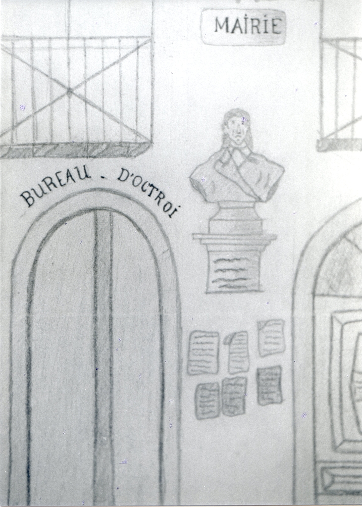 Console fixée sur la façade de la mairie et supportant un buste en marbre ; plaque d'inscription apposée sous la console
