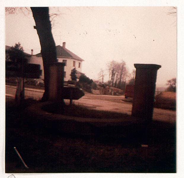 Banquette demi-circulaire, terminée par deux piliers à chapiteau.