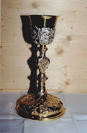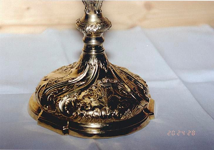 Pied, coupe et fausse coupe en argent doré. Fausse coupe ajourée.