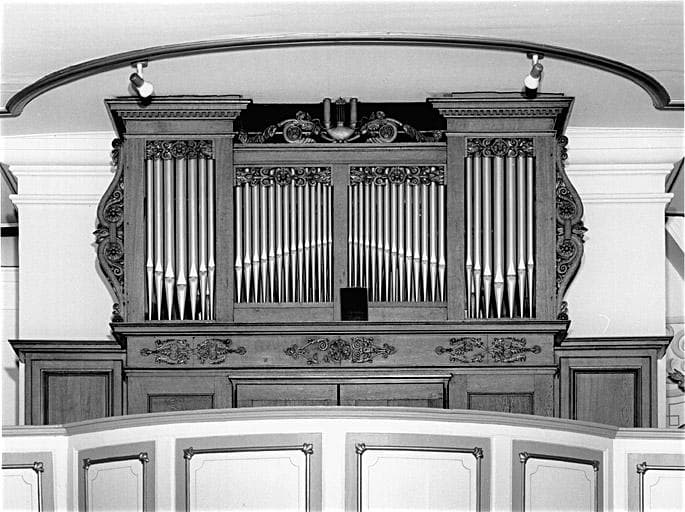 chêne : décor en bas-relief, ajouré ; carton-pierre : décor en bas-relief, décor rapporté, vernis ; zinc