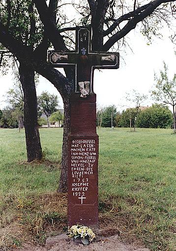 Croix portant la date 1757, érigée par Catherine Henz et Simon Heckel. Nom d'une personne décédée en 1922, Joseph Kieffer.