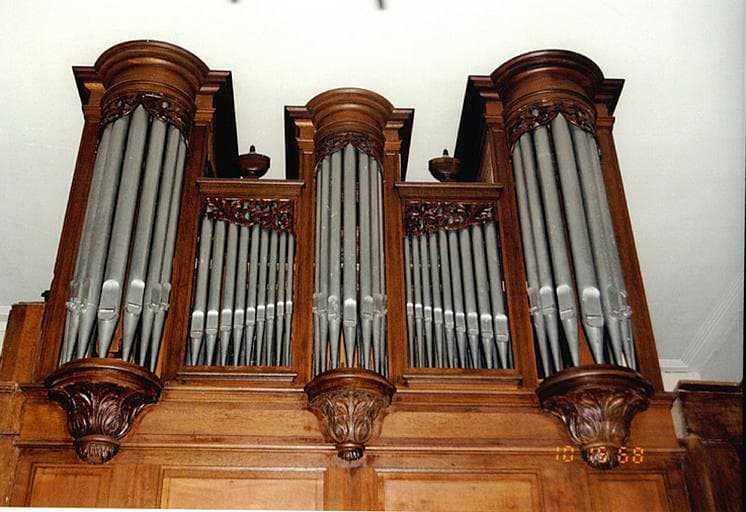 Le clavier se trouve dans une petite armoire latérale. (Pour la description détaillée de l'instrument, voir l'article de Pie Meyer-Siat dans la revue l'Outre-Forêt (III-1990), n°71, p. 16-19, dont proviennent également les renseignements historiques.)